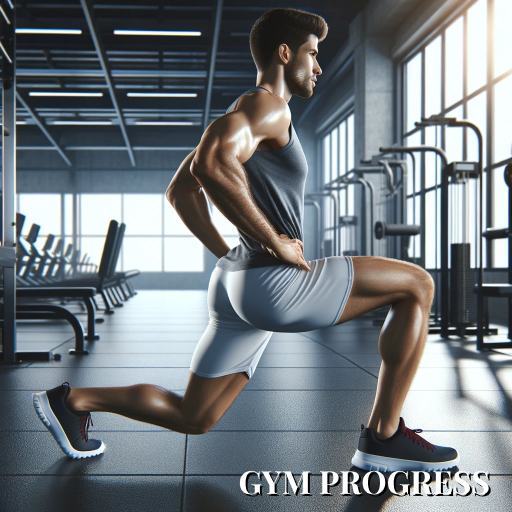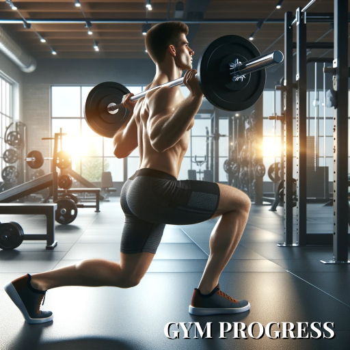Hold a barbell on your shoulders, step forward with one leg, lower your body until both knees are bent at 90 degrees.